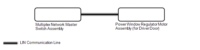 If the pulse sensor built into the power window regulator motor assembly (for driver door) is malfunctioning, the power window control system will enter fail-safe mode. The remote up and down and auto up and down functions cannot be operated during fail-safe mode. However, the power window can be closed by holding the multiplex network master switch assembly at the auto up position, and opened manually by pushing down the multiplex network master switch assembly.