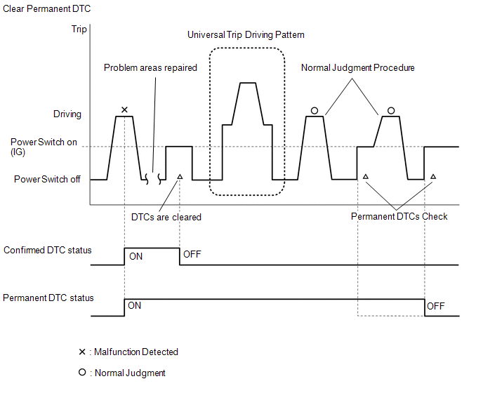 Permanent DTCs will be cleared if a normal judgment is obtained during 3 consecutive driving cycles with the MIL illuminated.