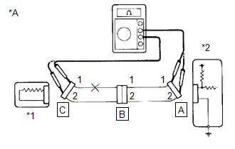 (a) For an open circuit in the wire harness in Fig. 1, measure the resistance and voltage as follows: