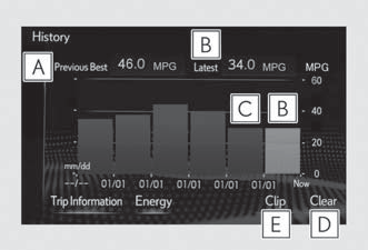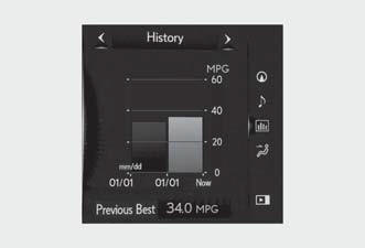 ■ History Displays the average fuel consumption and highest fuel consumption.