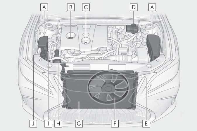 ■When the hybrid system is hot Do not touch the radiator or condenser as they may be hot and cause serious injuries, such as burns.