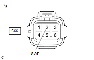 | C66-2 (SWP) - Body ground | Power switch on (IG) | Resistance fluctuates* |