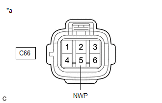 | C66-5 (NWP) - Body ground | Power switch on (IG) | 11 to 14 V |