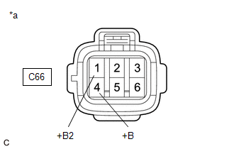 | C66-1 (+B2) - Body ground | Power switch on (IG) | 11 to 14 V |