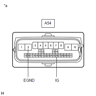 | A54-26 (IG) - Body ground | Power switch on (IG) | 8 to 16 V |