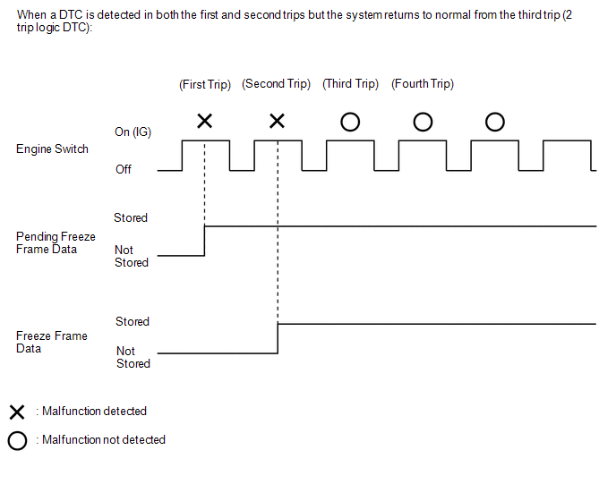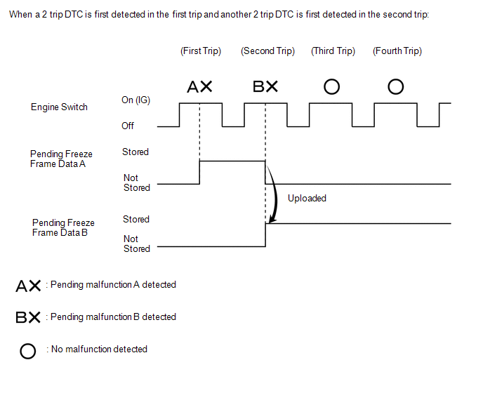 Pending freeze frame data is stored when a 2 trip DTC is first detected during the first trip.
