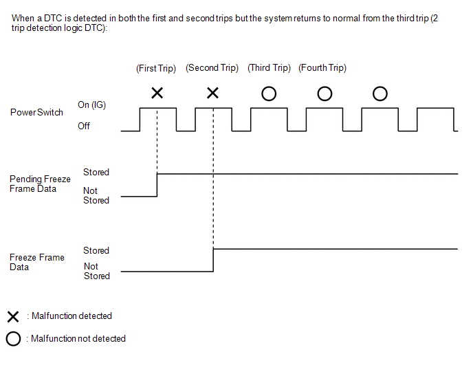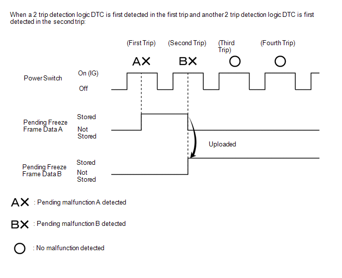 Pending Freeze Frame Data is stored when a 2 trip detection logic DTC is first detected during the first trip.