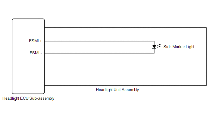 When the light control switch is in the tail or head position, the main body ECU (multiplex network body ECU) sends an illumination request signal to the headlight ECU sub-assembly to illuminate the front side marker lights.