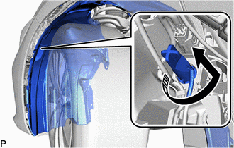 (b) Using a screwdriver with its tip wrapped with protective tape, disengage the 3 claws to separate the rear fender splash shield sub-assembly.