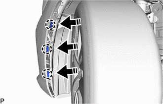 (d) Remove the 3 front fender liner retainers from the rear fender splash shield sub-assembly as shown in the illustration.