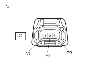 | D4-1 (VC) - D4-2 (E2) | Engine switch on (IG) | 4.75 to 5.25 V |