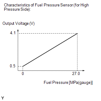 If the fuel pressure sensor (for high pressure side) output voltage is less than 0.2933 V for 3 seconds or more, the ECM will illuminate the MIL and store this DTC.
