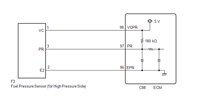| 2. | CHECK HARNESS AND CONNECTOR (FUEL PRESSURE SENSOR (FOR HIGH PRESSURE SIDE) - ECM) |
