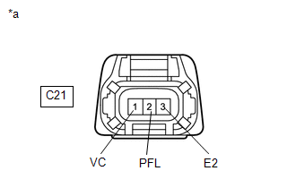 | C21-2 (PFL) - C21-3 (E2) | Engine switch on (IG) | 4.4 to 5.6 V |