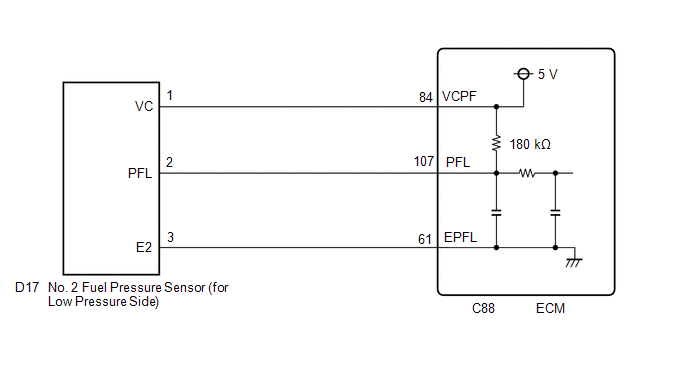 | 2. | CHECK HARNESS AND CONNECTOR (NO. 2 FUEL PRESSURE SENSOR (FOR LOW PRESSURE SIDE) - ECM) |