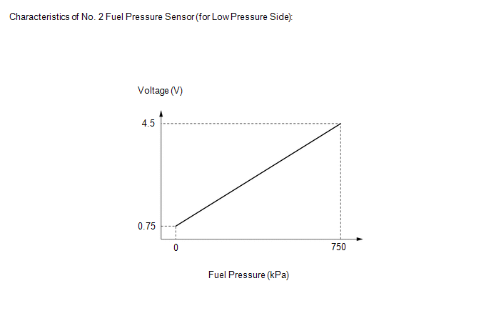 This DTC is stored if the No. 2 fuel pressure sensor (for low pressure side) output voltage is out of the standard range due to an open or short in the sensor circuit.