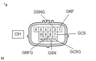 | (a) Check the connection condition of the resolver connector and the contact pressure of each terminal. Check the terminals for deformation, and check the connector for water ingress and foreign matter. Click here OK: - The connector is connected securely. - The terminals are not deformed and are connected securely. - No water or foreign matter in the connector. |