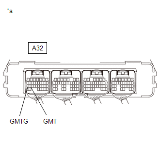 | (a) Connect terminals 26 (GMT) and 27 (GMTG) of the A32 hybrid vehicle control ECU connector. |