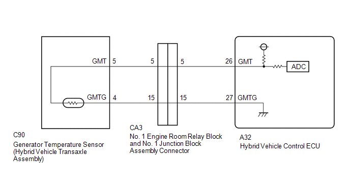 | 8. | CHECK HARNESS AND CONNECTOR (GENERATOR TEMPERATURE SENSOR - HYBRID VEHICLE CONTROL ECU) |