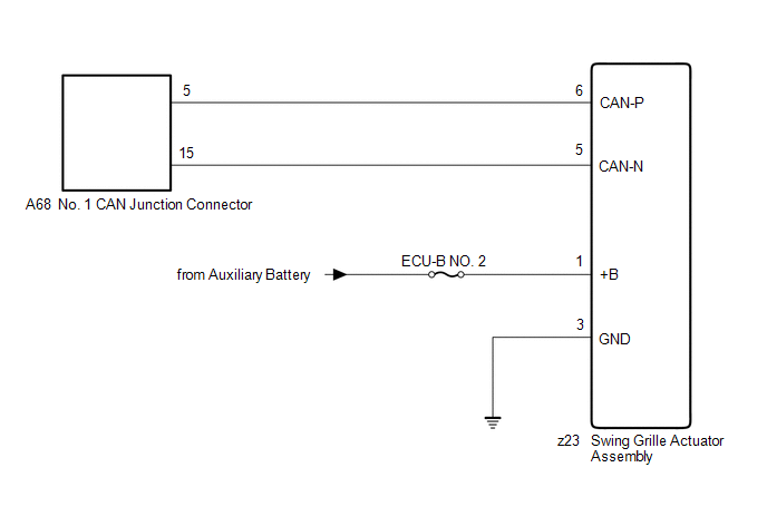 | 1. | CHECK FOR OPEN IN CAN BUS LINES (SWING GRILLE ACTUATOR ASSEMBLY BRANCH LINE) |