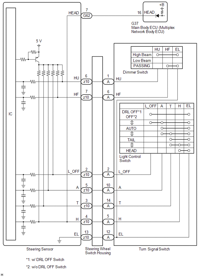| Light OFF Switch | Light control switch DRL OFF*1 or off*2 position signal | OFF or ON | OFF: Light control switch not in DRL OFF*1 or off*2 position ON: Light control switch in DRL OFF*1 or off*2 position | - |