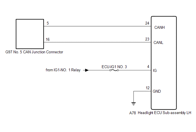 | 1. | CHECK FOR OPEN IN CAN BUS LINES (HEADLIGHT ECU SUB-ASSEMBLY LH BRANCH LINE) |
