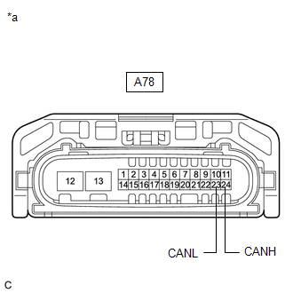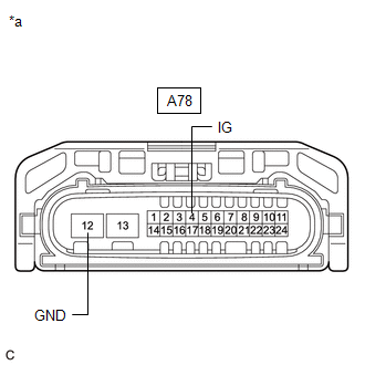 | A78-4 (IG) - Body ground | Power switch on (IG) | 11 to 14 V |