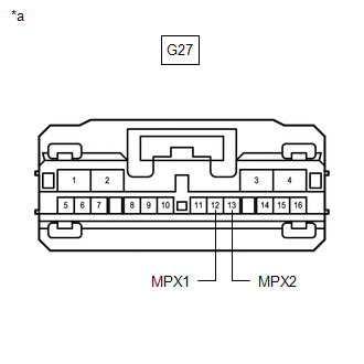 | G27-1 (IG) - Body ground | Engine switch on (IG) | 11 to 14 V |