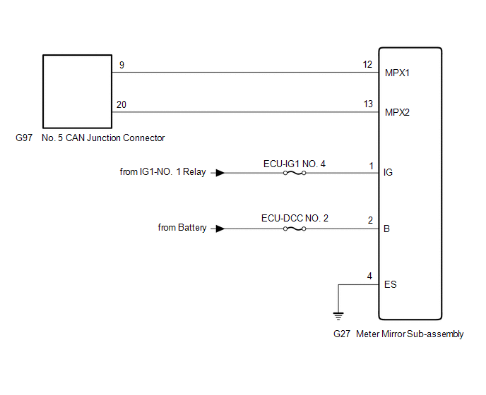 | 1. | CHECK FOR OPEN IN CAN BUS LINES (METER MIRROR SUB-ASSEMBLY BRANCH LINE) |