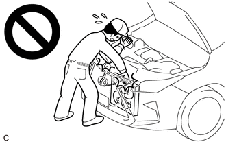 Do not apply 689 kPa (7.0 kgf/cm2, 100 psi) or more of compressed air to SST (tank assy).
