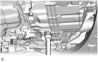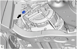| (s) Using a 10 mm hexagon socket wrench, remove the overflow plug and gasket from the transaxle housing. CAUTION: A small amount of hot automatic transaxle fluid may leak from the overflow plug port during removal. HINT: Place a container under the overflow plug to collect any automatic transaxle fluid that leaks out. |