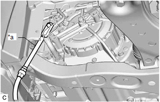 | (v) Close the upper valve of SST (tank assy) by turning the valve handle (upper valve) so it is perpendicular to the hose of SST (tank assy). NOTICE: