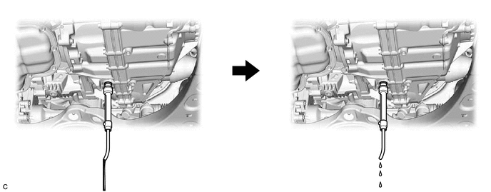 (3) Wait until the automatic transaxle fluid flow slows and only drips come out.