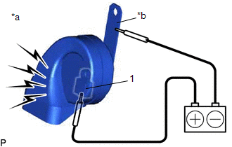 | (a) Apply auxiliary battery voltage and check the operation of the high pitched horn assembly according to the table below. OK:
