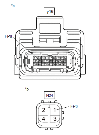 | y16-15 (FP0) - Body ground | Power switch on (IG) | Below 1 V |