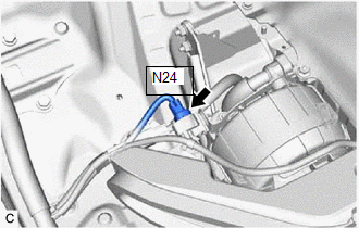 | (d) Disconnect the N24 battery cooling blower assembly connector. NOTICE: Before disconnecting the connector, check that it is not loose or disconnected. |