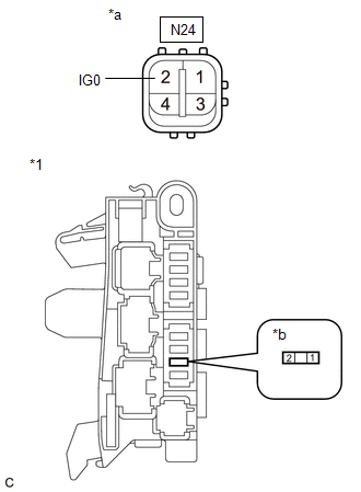 | N24-4 (SI0) - Body ground | Power switch on (IG) | Below 1 V |