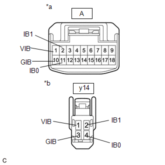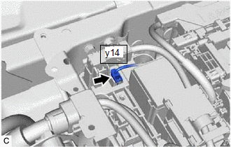 | (d) Disconnect the y14 battery current sensor connector from the HV battery junction block assembly. NOTICE: Before disconnecting the connector, check that it is not loose or disconnected. |