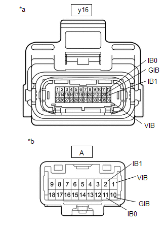 | (d) Disconnect the y16 battery ECU assembly connector. NOTICE: Before disconnecting the connector, check that it is not loose or disconnected. |