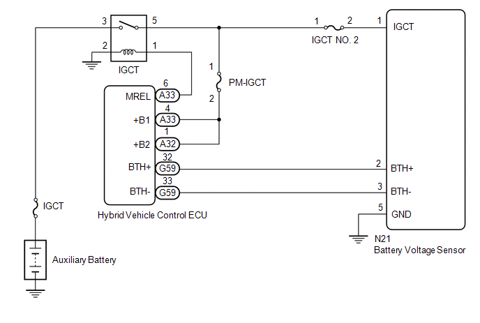 | OK | | REPAIR OR REPLACE HARNESS OR CONNECTOR (IGCT NO. 2 FUSE - BATTERY VOLTAGE SENSOR) |