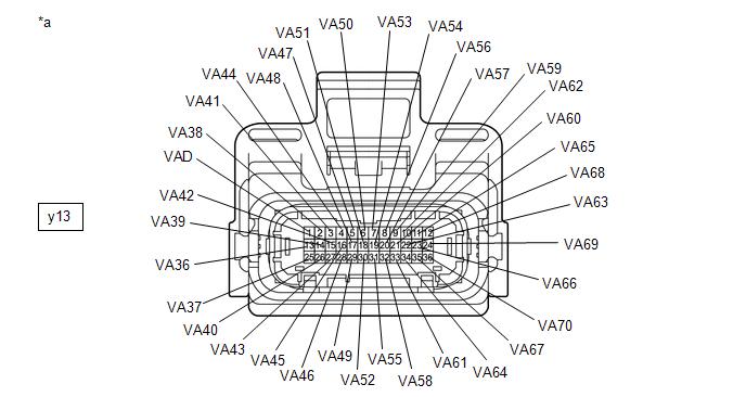 | 36 | y13-1 (VAD) (+) - y13-13 (VA36) (-) | Always | 0.3 to 1.0 V |