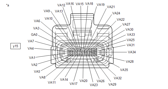 | 39 | y13-2 (VA38) (+) - y13-14 (VA39) (-) | Always | 0.3 to 1.0 V |