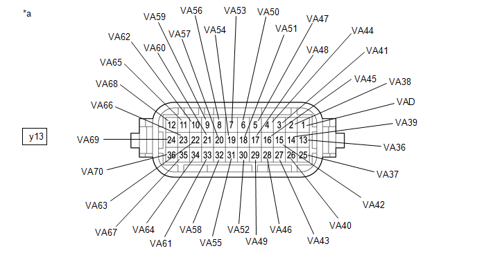 | 70 | y13-24 (VA69) (-) - y13-36 (VA70) (+) | Always | 50 kΩ or more |