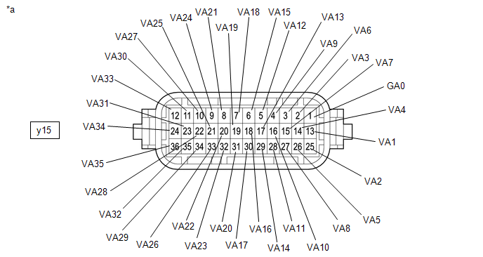 | 1 | y15-1 (GA0) (-) - y15-13 (VA1) (+) | Always | 50 kΩ or more |
