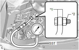 | (c) Using a 10 mm union nut wrench, install the bolt. Torque: Specified Tightening Torque : 10 N·m {102 kgf·cm, 7 ft·lbf} HINT: