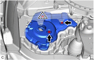 | (a) Install the automatic transmission case cover to the hybrid vehicle transaxle assembly with the clip. |