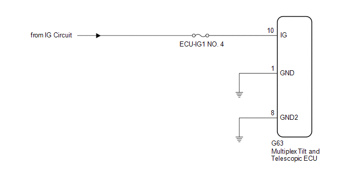 When the engine switch is turned on (IG), the IG power source circuit supplies positive (+) voltage to the multiplex tilt and telescopic ECU.