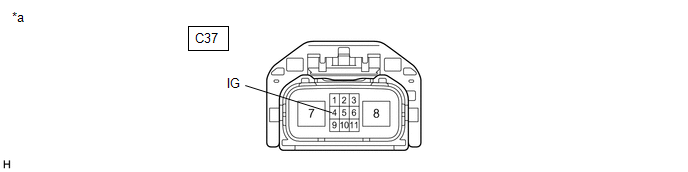 | C37-4 (IG) - Body ground | Power switch on (IG) | Below 18.5 V |
