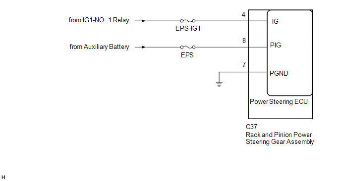 | 1. | CHECK HARNESS AND CONNECTOR (AUXILIARY BATTERY - RACK AND PINION POWER STEERING GEAR ASSEMBLY) |