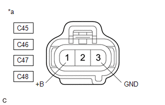 | C45-1 (+B) - C45-3 (GND) | Power switch on (IG) | 11 to 14 V |